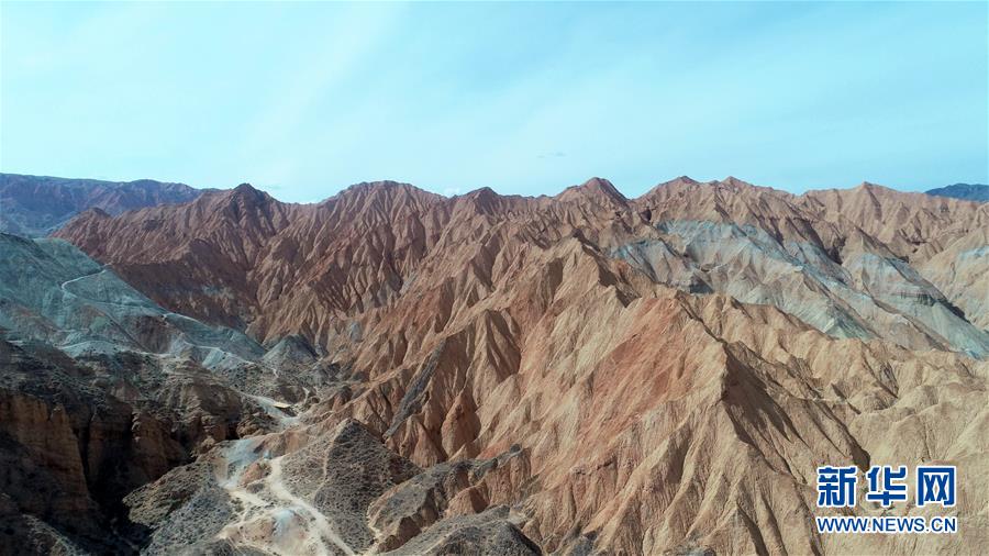 這是6月5日拍攝的位于青海省海南藏族自治州貴德縣境內(nèi)的丹霞地貌(無人機(jī)照片)。在青海省海南藏族自治州貴德縣境內(nèi),色彩斑斕的丹霞地貌美如畫卷。新華社記者趙玉和攝。