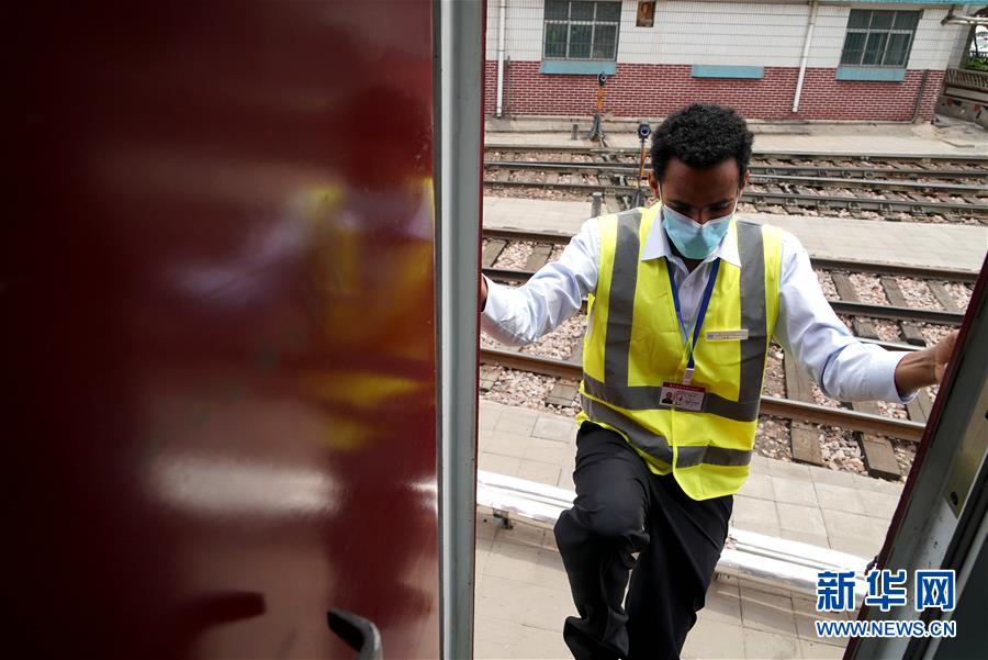 6月5日,特瑞薩在鄭州機務(wù)段內(nèi)登上機車。 新華社記者 李安 攝