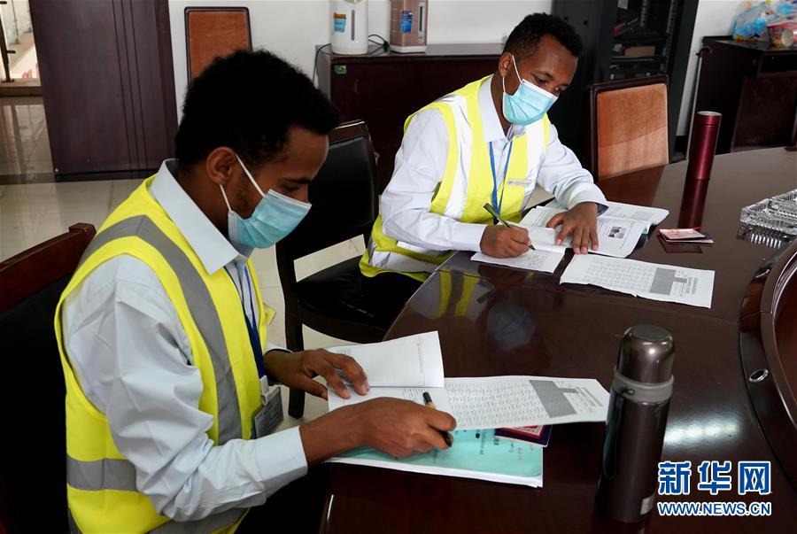 6月5日,在鄭州機(jī)務(wù)段,伊迪內(nèi)卡邱(右)和特瑞薩(左)在填寫實習(xí)手冊。 新華社記者 李安 攝