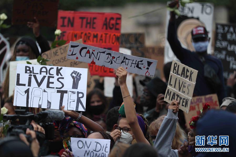 6月7日,民眾在比利時布魯塞爾市中心的司法宮附近參加示威活動。比利時民眾當(dāng)日在布魯塞爾市中心的司法宮附近舉行示威活動,抗議美國明尼阿波利斯市警察暴力執(zhí)法致非裔男子喬治·弗洛伊德死亡。新華社記者鄭煥松攝