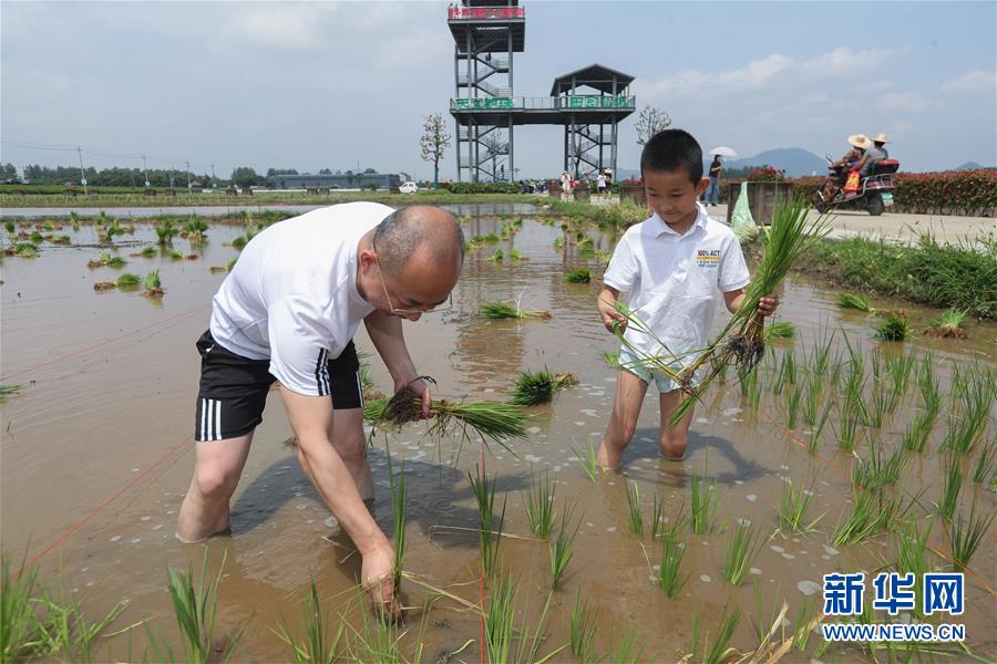 6月7日,孩子和家長體驗稻田插秧。新華社記者徐昱攝