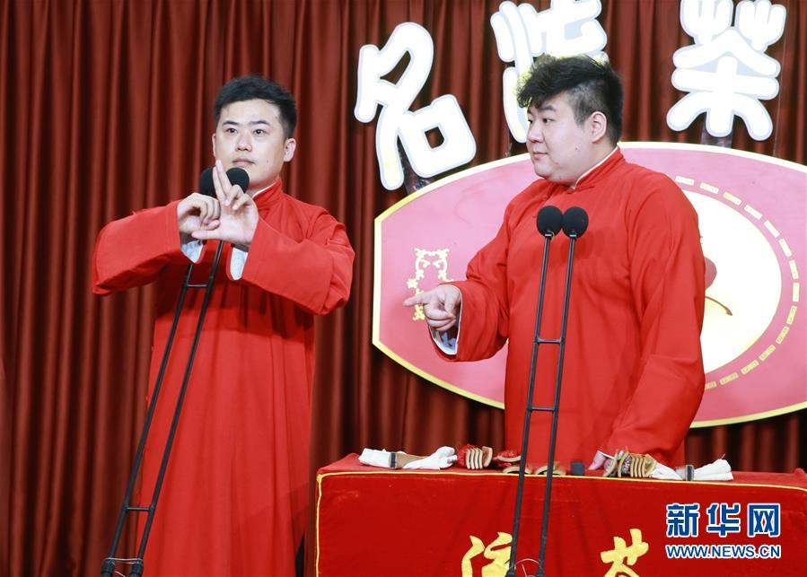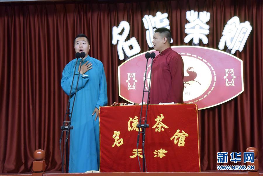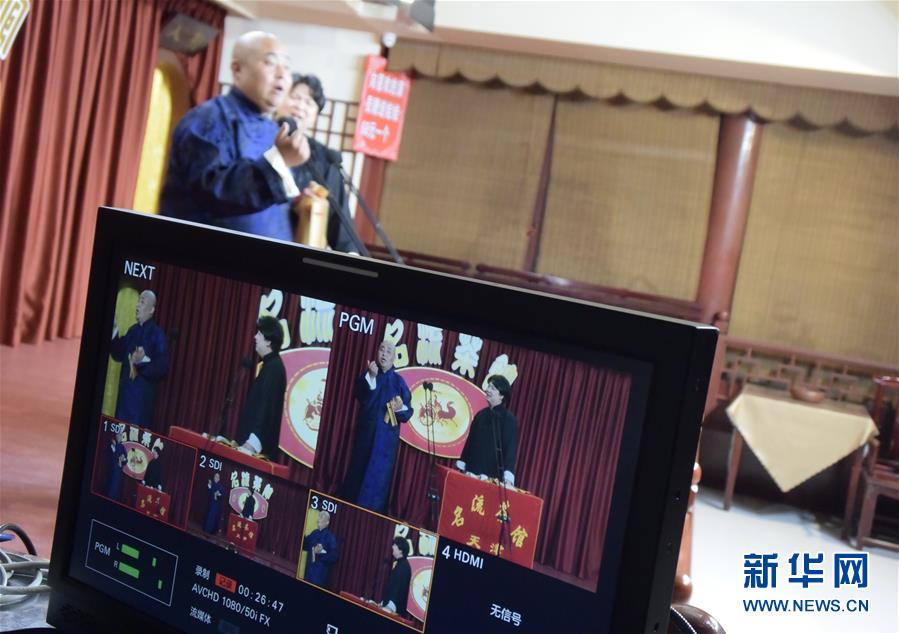 6月6日晚,天津名流茶館的相聲演員在付費直播《名流名家“逗你玩”》演出中說相聲。隨著疫情防控形勢逐漸向好,天津的一些茶館紛紛轉戰(zhàn)“云端”說相聲,推出付費直播演出,并邀請一些幸運觀眾到現場觀看,在傳播津味相聲、培養(yǎng)年輕觀眾的同時,也為即將到來的線下演出“預熱”。新華社記者周潤健攝