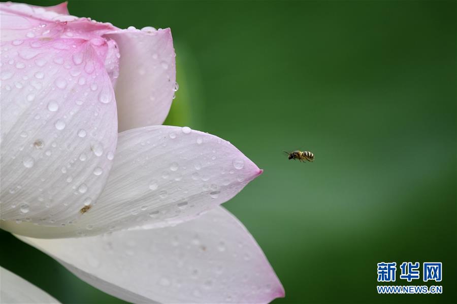6月7日,一陣小雨過后,福州金山公園內(nèi)盛開的荷花愈加嬌艷欲滴。新華社記者姜克紅攝