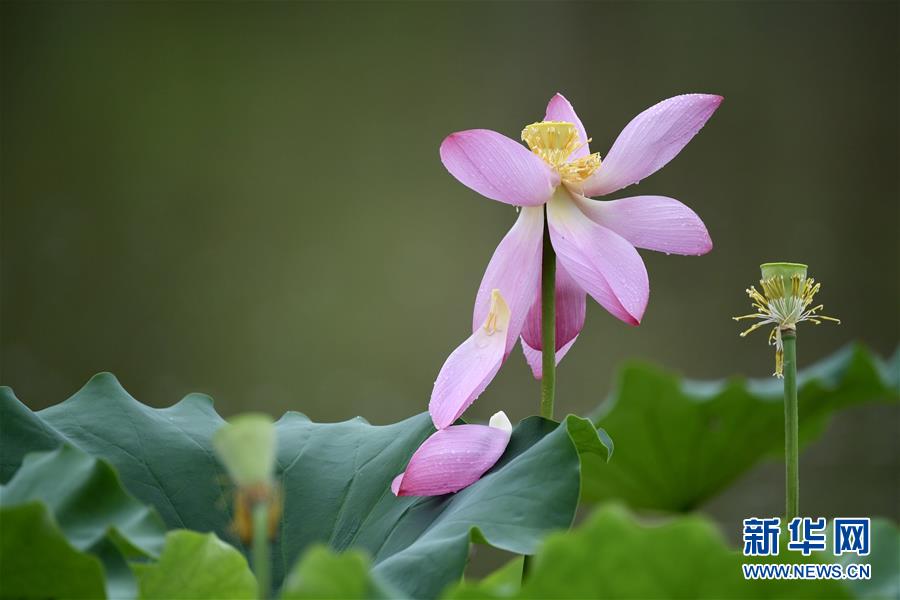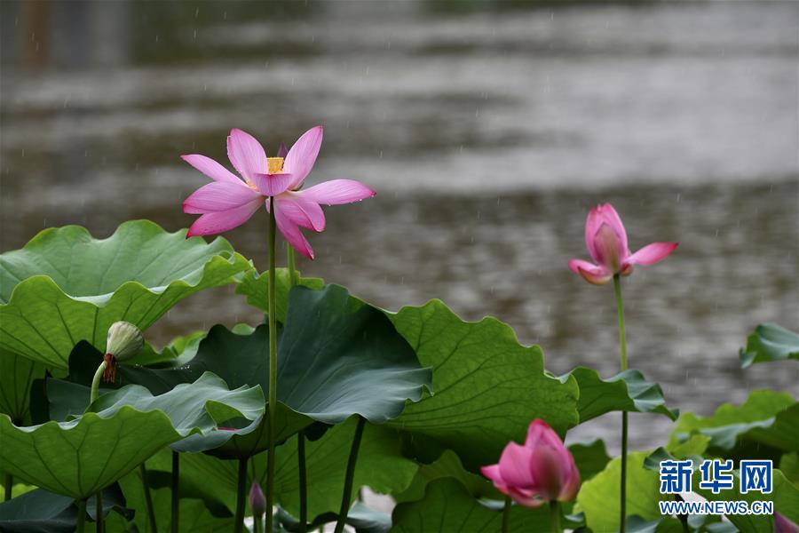 6月7日,一陣小雨過(guò)后,福州金山公園內(nèi)盛開的荷花愈加?jì)善G欲滴。新華社記者姜克紅攝