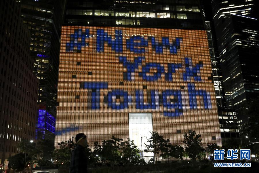 紐約多處建筑點燈致敬民眾團結(jié)抗疫