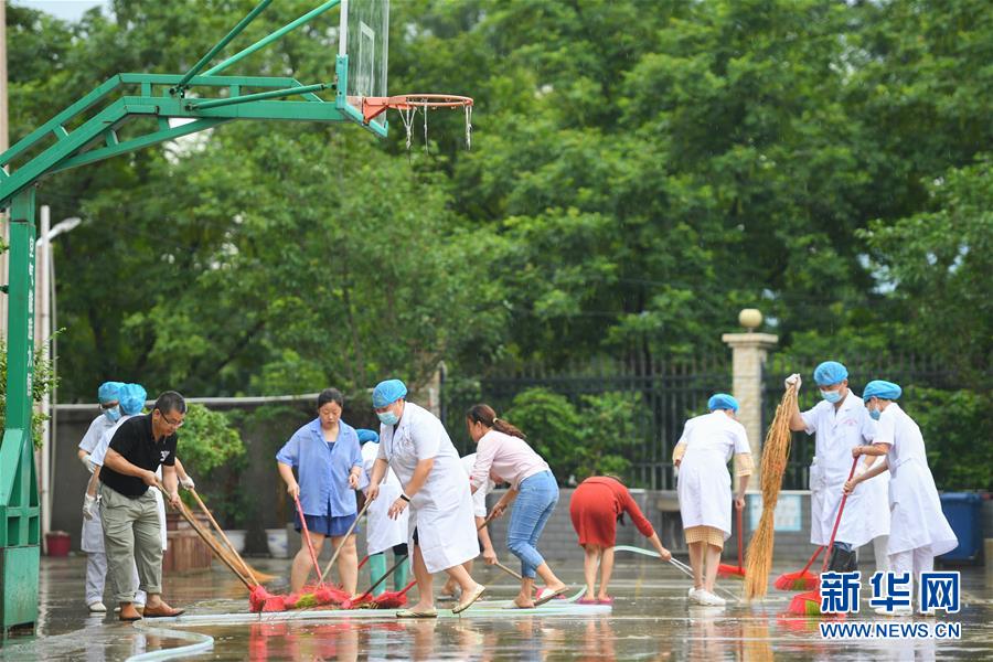 6月8日,在永州市江華瑤族自治縣白芒營(yíng)鎮(zhèn)車(chē)下完全小學(xué),工作人員在校園里清淤、沖洗地面。受近日持續(xù)強(qiáng)降雨影響,湖南省永州市江華瑤族自治縣發(fā)生洪澇災(zāi)害。6月8日,永州市江華瑤族自治縣白芒營(yíng)鎮(zhèn)車(chē)下完全小學(xué)開(kāi)展清淤、消毒工作,為6月9日恢復(fù)上課做準(zhǔn)備。新華社記者陳澤國(guó)攝