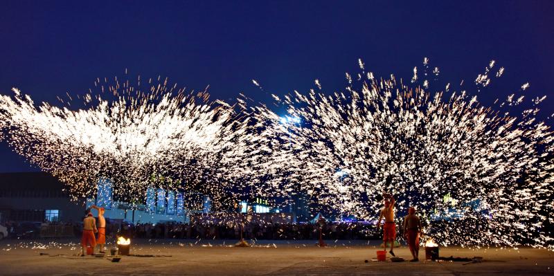 2020年6月7日晚8時許,吉林長春青岡立交橋附近,6月7日晚8時許,吉林長春青岡立交橋附近,臺北大街夜市,近千市民現(xiàn)場圍觀;古老打鐵花技藝首現(xiàn)長春,1700度鐵水空中開花,現(xiàn)場市民大呼過癮!這支來自河北滄州的神韻打鐵花表演隊全國各地走穴演出。據(jù)表演隊隊長朱震介紹,打鐵花是流傳于豫晉地區(qū)的民間傳統(tǒng)煙火,是國內(nèi)僅存的大型漢族民間傳統(tǒng)焰火。起源于北宋,鼎盛于明清,至今已有千余年的歷史,如今卻瀕臨失傳。2008年,打鐵花技藝被列入國家級非物質(zhì)文化遺產(chǎn)名錄。