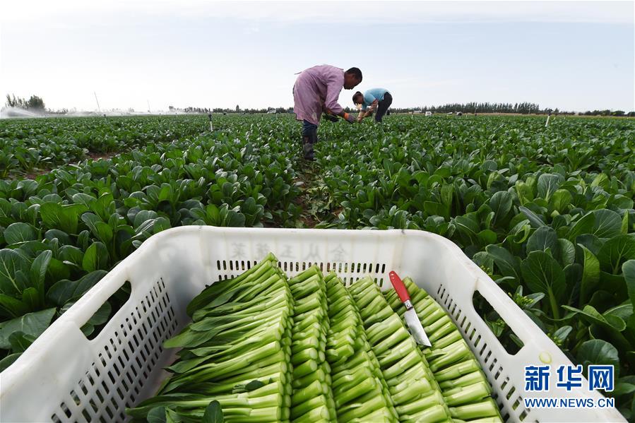 6月8日,粵港澳大灣區(qū)“菜籃子”(金昌)生產(chǎn)基地工作人員在采摘蔬菜。盛夏漸近,位于甘肅省金昌市金川區(qū)的粵港澳大灣區(qū)“菜籃子”(金昌)生產(chǎn)基地的多種蔬菜陸續(xù)豐收。該基地種植面積達(dá)1.3萬多畝,采用高效噴灌、精量播種等技術(shù),以及“企業(yè)+合作社+基地+農(nóng)戶”的模式,通過輪作倒茬、循環(huán)供應(yīng)的方式,每年可種植蔬菜3至4茬,畝均產(chǎn)量2000公斤左右,總產(chǎn)值達(dá)1.5億元。新華社記者范培珅攝
