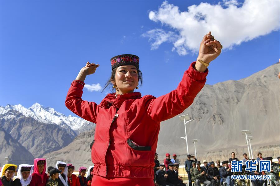 熱斯喀木村村民在演出現(xiàn)場隨著音樂歡快起舞(6月6日攝)。新華社記者胡虎虎攝
