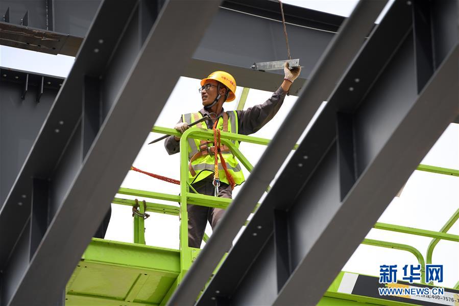 6月9日,工人在位于重慶市巴南區(qū)的渝湘高鐵重慶段建設工地現(xiàn)場作業(yè)。