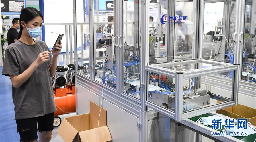 6月10日,觀眾參觀展會(huì)上的一臺(tái)口罩生產(chǎn)設(shè)備。當(dāng)日,廣州國際防疫物資展覽會(huì)在保利世貿(mào)博覽館舉行。本次展會(huì)面積共計(jì)3.6萬平方米,設(shè)有防疫產(chǎn)品、設(shè)備、綜合服務(wù)、原輔料等4個(gè)展區(qū),參展企業(yè)約600家。新華社記者鄧華攝