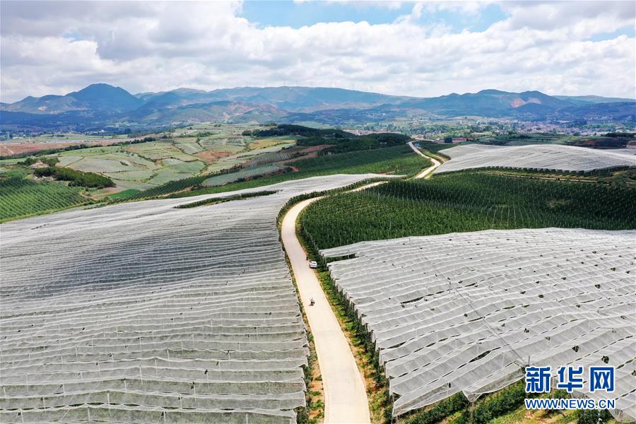 這是6月11日拍攝的貴州省威寧縣一處蘋果基地(無人機照片)。近日,貴州省威寧彝族回族苗族自治縣的農(nóng)民搶抓農(nóng)時,對蘋果園進(jìn)行疏果、除草等田間管理,呈現(xiàn)出一派夏管農(nóng)忙景象。威寧縣蘋果種植面積50余萬畝,蘋果產(chǎn)業(yè)已逐步成為當(dāng)?shù)剞r(nóng)民增收致富的主導(dǎo)產(chǎn)業(yè)之一。新華社記者楊文斌攝。