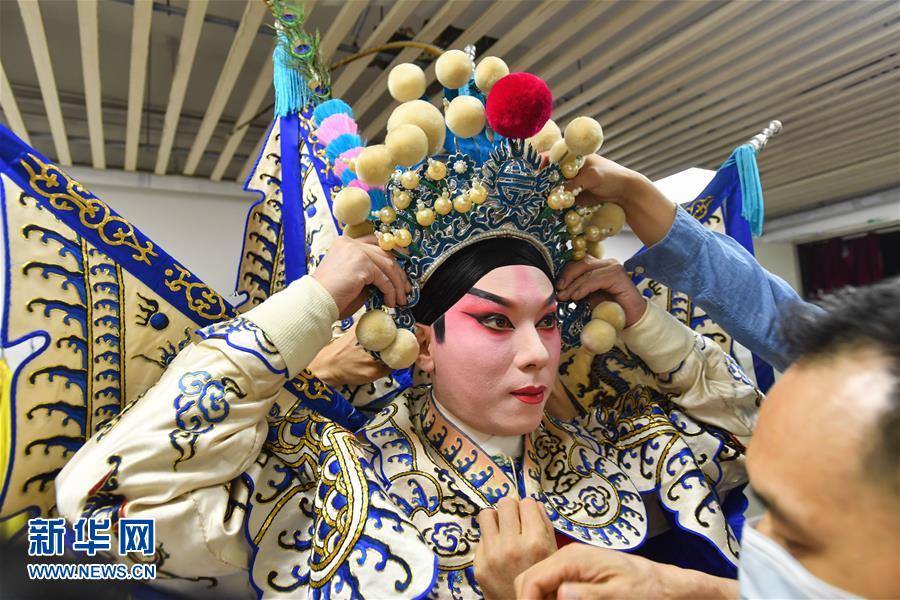 6月12日,廣東粵劇院演員在為演出做準(zhǔn)備。當(dāng)日,廣東粵劇院聯(lián)合酷狗網(wǎng)絡(luò)直播平臺(tái)推出“周末睇大戲(線上版)”,將線下劇場轉(zhuǎn)移到線上,在酷狗直播間里呈現(xiàn)粵劇的經(jīng)典劇目,為劇迷們打造一場“云端”盛宴。新華社記者 劉大偉 攝