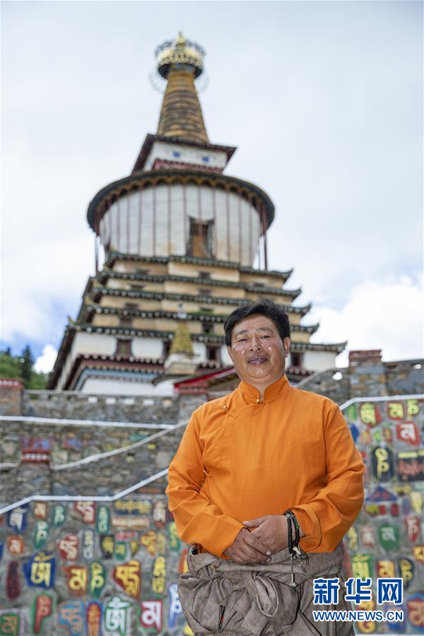 這是在四川省阿壩藏族羌族自治州壤塘縣棒托石刻公園拍攝的石刻傳習所所長班瑪羅爾吾(6月13日攝)。新華社記者 沈伯韓 攝