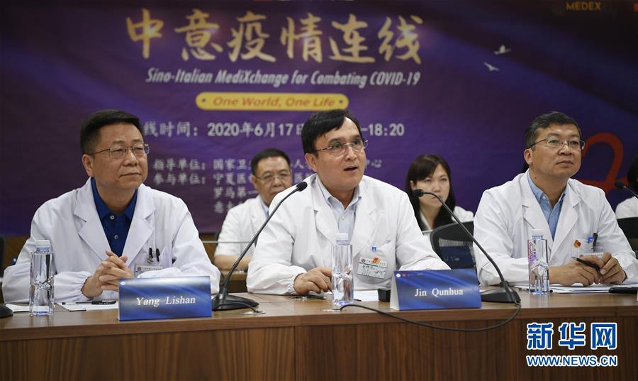 6月17日,寧夏醫(yī)科大學(xué)總醫(yī)院專家與羅馬第一公共醫(yī)療衛(wèi)生中心醫(yī)務(wù)人員進(jìn)行視頻交流。當(dāng)日,寧夏醫(yī)科大學(xué)總醫(yī)院專家通過(guò)視頻連線,與意大利羅馬第一公共醫(yī)療衛(wèi)生中心一線醫(yī)務(wù)人員分享防疫抗疫經(jīng)驗(yàn),共克時(shí)艱。新華社記者 王鵬 攝