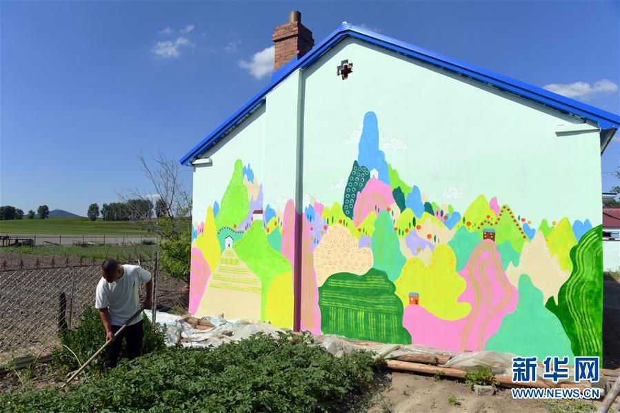 6月18日,一名吉林藝術(shù)學(xué)院學(xué)生在清水村進行涂鴉創(chuàng)作。新華社記者林宏攝