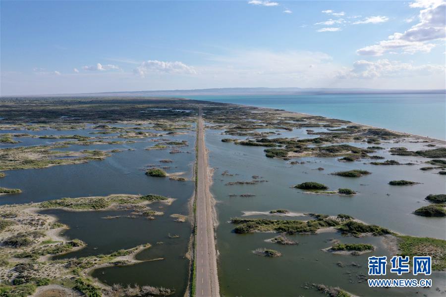 6月18日拍攝的新疆烏倫古湖國(guó)家濕地公園(無(wú)人機(jī)照片)。烏倫古湖國(guó)家濕地公園位于新疆阿勒泰地區(qū)福海縣城以西,由烏倫古湖和吉力湖兩部分組成。烏倫古湖濕地公園是遷徙候鳥飛越天山和阿爾泰山的“能量補(bǔ)充站”,良好的濕地生態(tài)吸引著大量遷徙鳥類在此集結(jié)成群,繁殖棲息,成為一道靚麗的風(fēng)景線。新華社記者 沙達(dá)提 攝