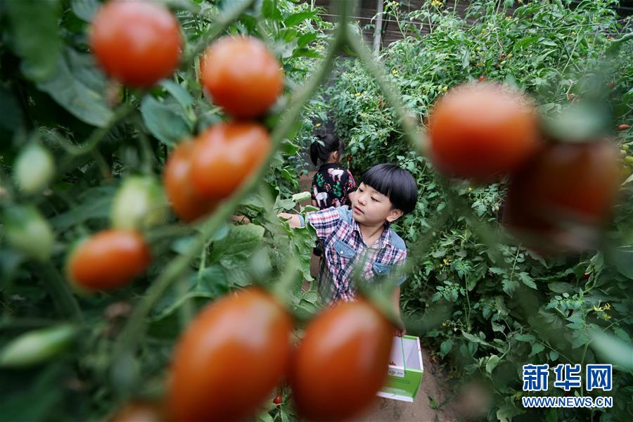 6月21日,小朋友在灤州市雷莊鎮(zhèn)吉祥現(xiàn)代農(nóng)業(yè)園區(qū)大棚內(nèi)采摘櫻桃西紅柿。近年來,河北省灤州市積極調(diào)整農(nóng)業(yè)產(chǎn)業(yè)結(jié)構(gòu),鼓勵當?shù)睾献魃绾娃r(nóng)戶發(fā)展果蔬種植,豐富當?shù)剞r(nóng)產(chǎn)品種類,越來越多的農(nóng)民依靠“果園子”“菜籃子”鼓起了“錢袋子”。新華社記者牟宇攝