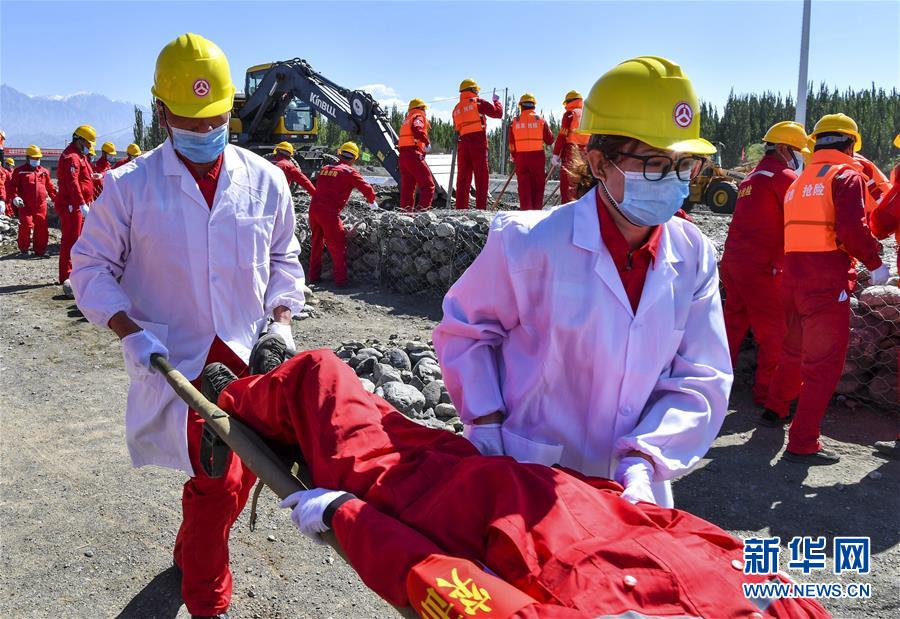 6月22日,應(yīng)急搶險隊員參加演練。當(dāng)日,新疆維吾爾自治區(qū)公路管理局組織的2020年國省干線公路突發(fā)地質(zhì)災(zāi)害應(yīng)急演練在烏魯木齊舉行,演練模擬烏魯木齊市柴窩堡區(qū)域遭受強(qiáng)降雨,誘發(fā)附近水域突發(fā)洪水,公路路基面臨被洪水沖毀的險情,組織搶險人員和機(jī)械設(shè)備在指定時間內(nèi)趕赴受災(zāi)現(xiàn)場實施應(yīng)急搶險處置。此次演練將進(jìn)一步增強(qiáng)各相關(guān)部門的防災(zāi)減災(zāi)意識,提高公路應(yīng)急搶險處突能力。新華社記者王菲攝