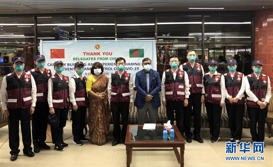 6月22日,孟加拉國衛(wèi)生和家庭福利部部長馬利克(右六)等在首都達卡舉行的送行儀式上與中方專家組合影留念。中國赴孟加拉國抗疫醫(yī)療專家組圓滿完成任務,于22日乘機返回祖國。孟加拉國衛(wèi)生和家庭福利部部長馬利克對疫情發(fā)生以來中國給予孟加拉國的大力支持表示感謝。新華社記者劉春濤攝
