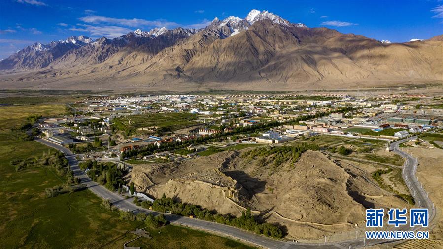 位于帕米爾高原上的新疆塔什庫(kù)爾干塔吉克自治縣縣城(6月10日攝,無人機(jī)照片)。新華社記者胡虎虎攝