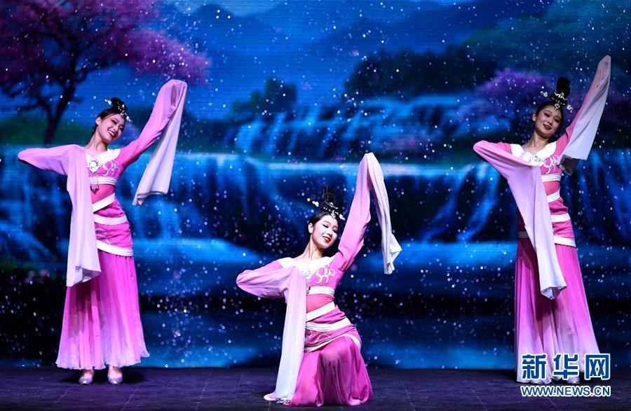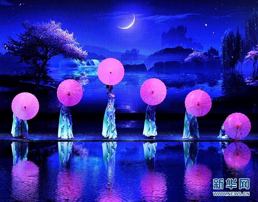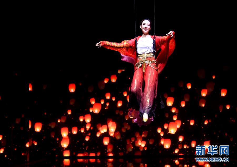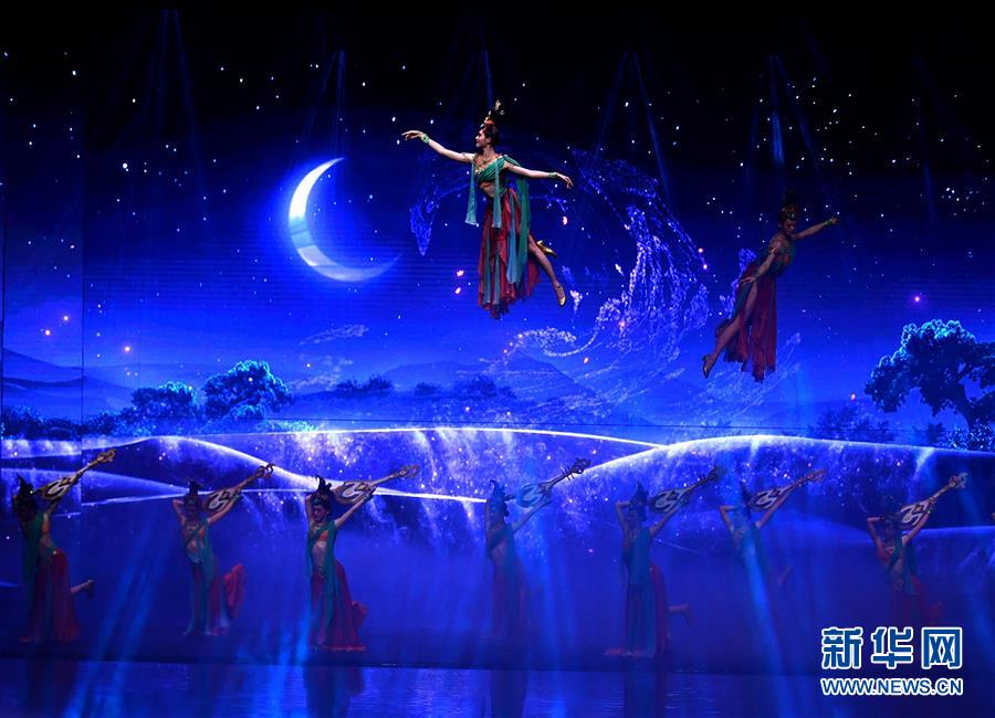 6月22日拍攝的《西安千古情》演出現場。大型舞臺劇《西安千古情》22日在西安浐灞世博園首演。該劇以一位華裔少女歸國尋根為故事主線,濃縮展現了古城西安的悠久歷史文化。新華社記者張博文攝