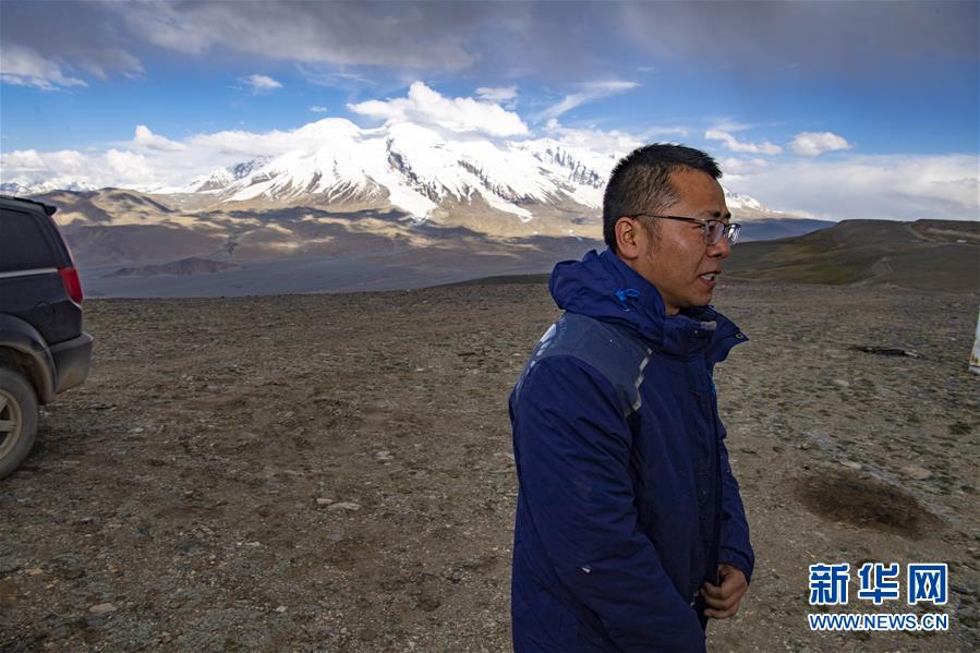 到達(dá)慕士塔格觀測(cè)站后,冷風(fēng)襲來(lái),馮國(guó)杰穿上沖鋒衣,拉上拉鏈(6月15日攝)。新華社記者胡虎虎攝
