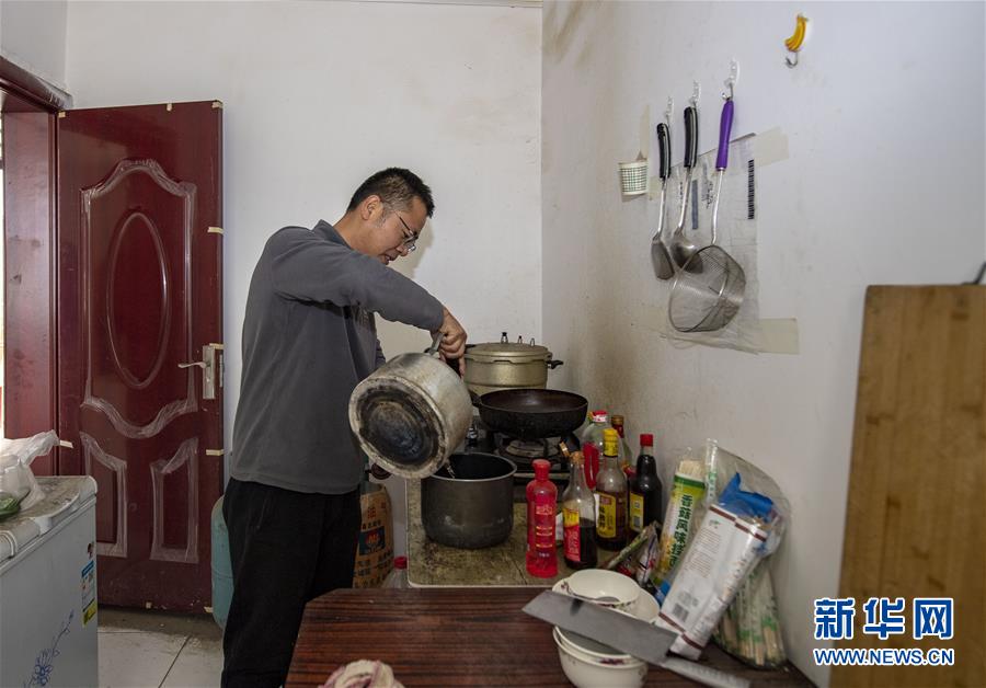 在位于新疆阿克陶縣布倫口鄉(xiāng)蘇巴什村的生活區(qū),天文科技工作者馮國杰在做飯(6月16日攝)。新華社記者胡虎虎攝