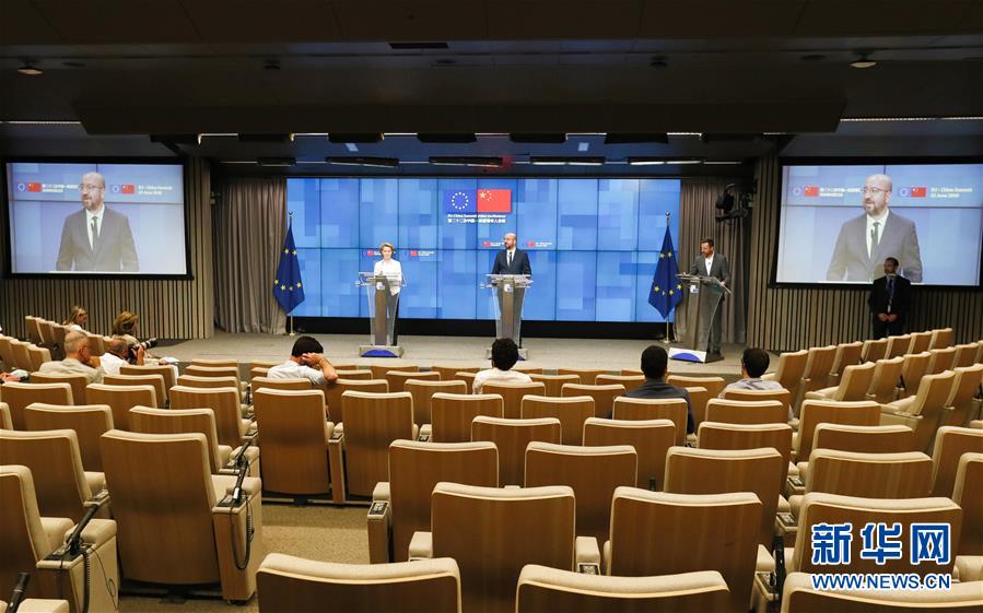 6月22日,歐洲理事會(huì)主席米歇爾(右)和歐盟委員會(huì)主席馮德萊恩在位于比利時(shí)布魯塞爾的歐盟總部出席第二十二次中國(guó)-歐盟領(lǐng)導(dǎo)人會(huì)晤后舉行的新聞發(fā)布會(huì)。新華社記者鄭煥松攝