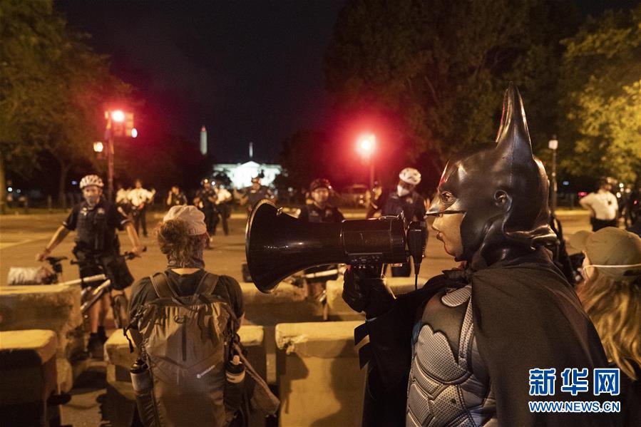 6月22日,警察和示威者在美國(guó)華盛頓白宮附近對(duì)峙。美國(guó)警察和示威者22日晚在首都華盛頓市白宮北側(cè)拉斐特廣場(chǎng)發(fā)生沖突并對(duì)峙。美國(guó)總統(tǒng)特朗普在社交媒體上說(shuō),許多人因破壞廣場(chǎng)上美國(guó)前總統(tǒng)安德魯·杰克遜的雕像及附近圣約翰圣公會(huì)教堂被逮捕。新華社記者劉杰攝
