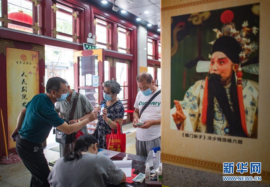6月26日,市民掃健康碼登記后進入武漢市人民劇院。當日,武漢市中心7家劇場恢復(fù)開放,各大文藝院團恢復(fù)線下演出,市民再次坐在劇場內(nèi)觀看“戲碼頭”上群星云集、百戲薈萃。新華社記者 肖藝九 攝