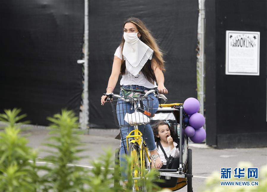 6月27日,一名女士在美國紐約多米諾公園內(nèi)騎車帶孩子游玩。美國約翰斯·霍普金斯大學(xué)27日發(fā)布的新冠疫情最新統(tǒng)計(jì)數(shù)據(jù)顯示,截至美國東部時(shí)間27日16時(shí)35分(北京時(shí)間28日4時(shí)35分),美國累計(jì)新冠確診病例2500419例,累計(jì)死亡病例125434例。新華社記者王迎攝