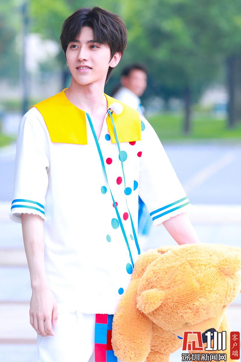 蔡徐坤穿白色波點(diǎn)裝帥氣陽光。