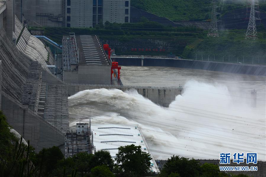 6月29日,三峽樞紐開啟泄洪孔泄洪。受長江中上游強(qiáng)降雨影響,進(jìn)入三峽水庫的水量持續(xù)增多。為騰出一定庫容迎接近期可能到來的洪水,三峽樞紐于6月29日上午開啟兩個泄洪孔,加大下泄流量。這是三峽樞紐今年首次泄洪。28日14時,三峽水庫入庫流量達(dá)4萬立方米/秒,是27日14時的兩倍。為應(yīng)對此輪來水,長江防總要求將三峽水庫下泄流量上調(diào)至日均3.5萬立方米/秒。新華社發(fā)(黃善軍攝)
