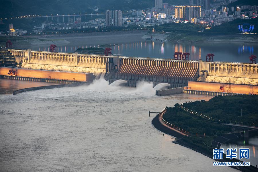 6月29日,三峽樞紐開啟泄洪孔泄洪。受長江中上游強降雨影響,進入三峽水庫的水量持續(xù)增多。為騰出一定庫容迎接近期可能到來的洪水,三峽樞紐于6月29日上午開啟兩個泄洪孔,加大下泄流量。這是三峽樞紐今年首次泄洪。28日14時,三峽水庫入庫流量達4萬立方米/秒,是27日14時的兩倍。為應對此輪來水,長江防總要求將三峽水庫下泄流量上調至日均3.5萬立方米/秒。新華社發(fā)(鄭家裕攝)