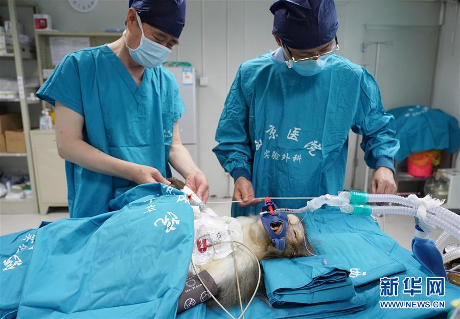 6月29日,研究人員在病房?jī)?nèi)查看移植肝受體猴。日前,多基因編輯豬-恒河猴異種肝、心、腎器官移植在位于陜西西安的空軍軍醫(yī)大學(xué)西京醫(yī)院順利實(shí)施。研究團(tuán)隊(duì)使用豬內(nèi)源性逆轉(zhuǎn)錄病毒(PERV)敲除的13個(gè)基因修飾豬作為供體,將一個(gè)供體豬的肝、心、腎分別移植給3只恒河猴受體。目前,移植肝和對(duì)應(yīng)的受體猴已存活16天,突破國際上的豬-猴輔助性肝移植最長(zhǎng)存活時(shí)間記錄。這項(xiàng)研究有助于未來解決器官短缺造成的臨床器官移植發(fā)展受限難題。新華社記者邵瑞攝