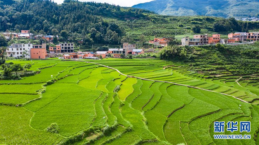 貴州省盤州市新民鎮(zhèn)的梯田風(fēng)光(6月29日攝,無人機(jī)照片)。夏日時(shí)節(jié),貴州省盤州市新民鎮(zhèn)的梯田風(fēng)景如畫。新華社記者陶亮攝