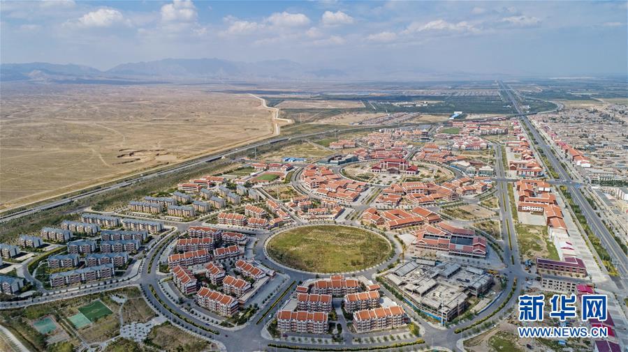 這是2019年9月3日拍攝的寧夏銀川市永寧縣閩寧鎮(zhèn)新鎮(zhèn)建設(shè)全景(無(wú)人機(jī)照片)。新華社記者王鵬攝