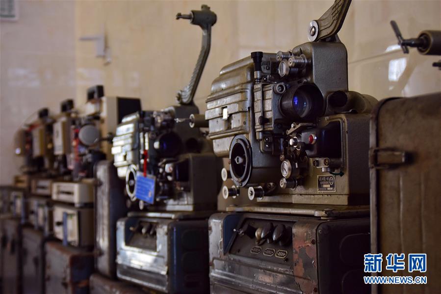 6月30日,朱生榮和兒子朱強(qiáng)創(chuàng)辦的“馬鳴電影館”內(nèi)存放著第一代國(guó)產(chǎn)放映機(jī)“老五四型”放映機(jī)。新華社記者鄭夢(mèng)雨攝