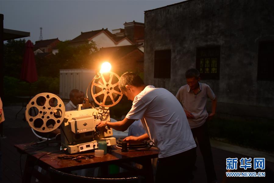 6月30日,朱強(qiáng)在當(dāng)晚電影開播前調(diào)試放映機(jī)鏡頭焦距。新華社記者鄭夢雨攝