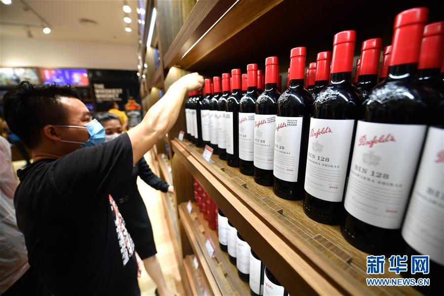 7月1日,顧客在??谌赵聫V場(chǎng)免稅店選購(gòu)酒類商品。當(dāng)日,海南開始實(shí)施調(diào)整后的離島免稅購(gòu)物政策。海南離島旅客每年每人免稅購(gòu)物額度提高至10萬元,電子消費(fèi)產(chǎn)品等7類新增商品開售。新華社記者郭程攝
