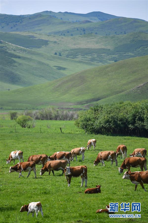 烏蘭毛都草原上的牛群(7月2日攝)。盛夏時節(jié),內(nèi)蒙古興安盟科爾沁右翼前旗的烏蘭毛都草原綠意盎然,風(fēng)景醉人。烏蘭毛都草原地處大興安嶺南麓,屬丘陵山地草原,風(fēng)光獨(dú)特。新華社記者貝赫攝