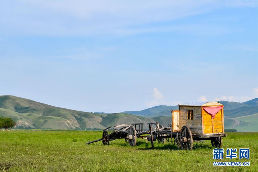 烏蘭毛都草原上的勒勒車(7月1日攝)。盛夏時節(jié),內(nèi)蒙古興安盟科爾沁右翼前旗的烏蘭毛都草原綠意盎然,風景醉人。烏蘭毛都草原地處大興安嶺南麓,屬丘陵山地草原,風光獨特。新華社記者貝赫攝