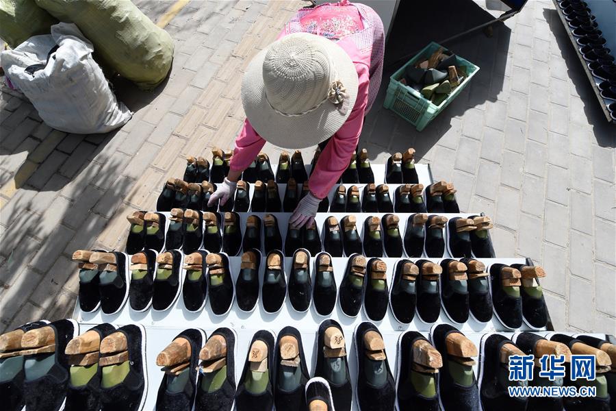 7月2日,臨夏縣百利布鞋加工農(nóng)民專(zhuān)業(yè)合作社員工在擺放布鞋。甘肅省臨夏回族自治州臨夏縣將布鞋加工定為重點(diǎn)扶持發(fā)展的產(chǎn)業(yè),采用“政府+公司+貧困戶”的產(chǎn)業(yè)扶貧模式,由政府主導(dǎo)、企業(yè)出資,在貧困村建設(shè)“扶貧車(chē)間”,吸納貧困群眾從事布鞋加工產(chǎn)業(yè)增加收入。截至2019年底,當(dāng)?shù)夭夹庸て髽I(yè)和加工戶遍及近百個(gè)行政村,從業(yè)人員達(dá)到4000多人,累計(jì)生產(chǎn)布鞋600多萬(wàn)雙,實(shí)現(xiàn)銷(xiāo)售收入2.32億元。新華社記者范培珅攝