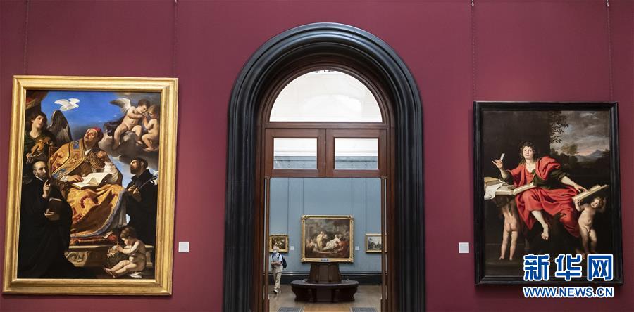7月4日,參觀者佩戴口罩在英國國家美術(shù)館的媒體開放日上參觀。新華社記者韓巖攝