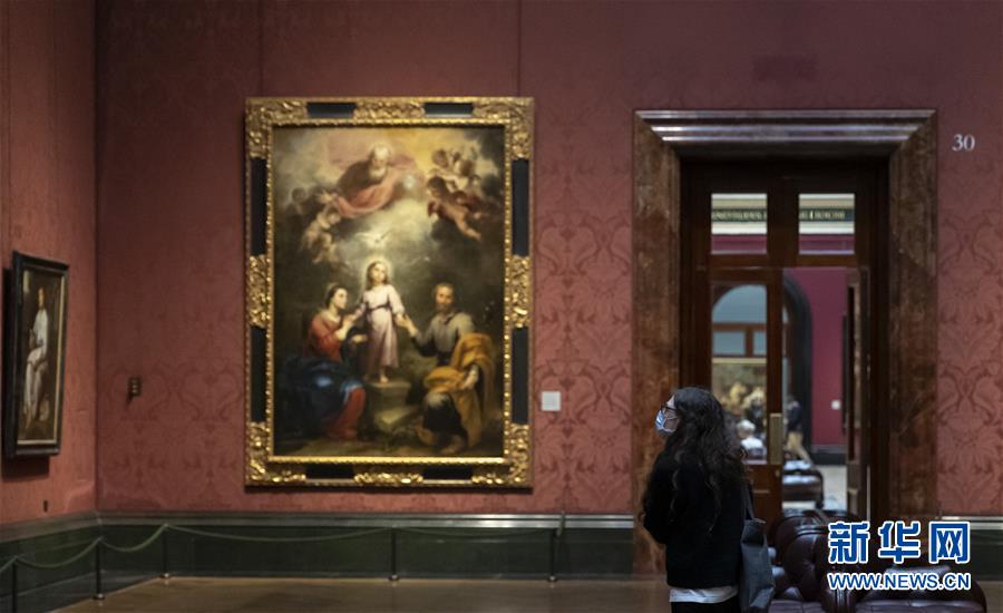 7月4日,參觀者佩戴口罩在英國國家美術(shù)館的媒體開放日上參觀。新華社記者韓巖攝