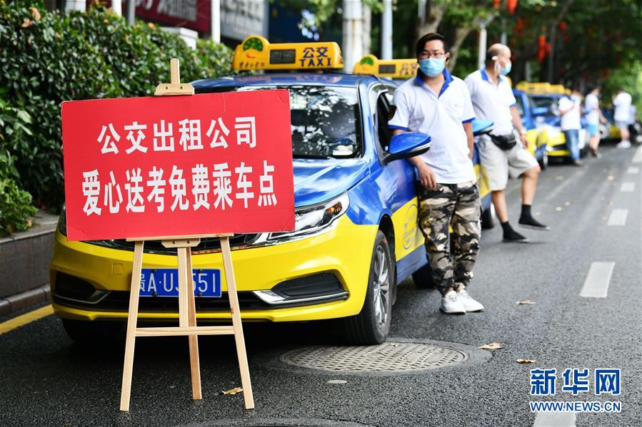 7月7日,在貴州省貴陽市第六中學考點外,愛心送考出租車司機在等候考生結束考試后免費乘車。當日,2020年高考拉開帷幕。新華社記者楊文斌攝
