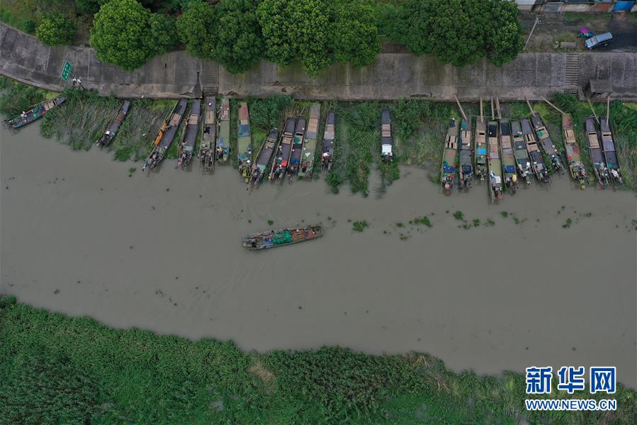 在吳興高新區(qū)幻溇村的避風港,停泊了大批漁船(7月7日攝,無人機照片)。近日,位于浙江北部的湖州市遭遇多輪降雨,東部平原河網普遍超警戒水位,水庫山塘高位運行。7月5日12時30分,湖州市人民政府防汛防旱指揮部將防汛應急響應提升至Ⅲ級,要求各地密切監(jiān)測汛情,切實做好各項防范工作,確保安全度汛。新華社記者黃宗治攝
