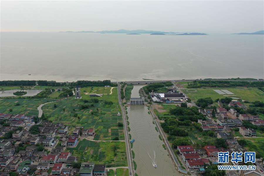 7月7日無人機拍攝的吳興高新區(qū)幻溇村連通太湖的水閘。太湖水位近期持續(xù)上漲。近日,位于浙江北部的湖州市遭遇多輪降雨,東部平原河網普遍超警戒水位,水庫山塘高位運行。7月5日12時30分,湖州市人民政府防汛防旱指揮部將防汛應急響應提升至Ⅲ級,要求各地密切監(jiān)測汛情,切實做好各項防范工作,確保安全度汛。新華社記者黃宗治攝