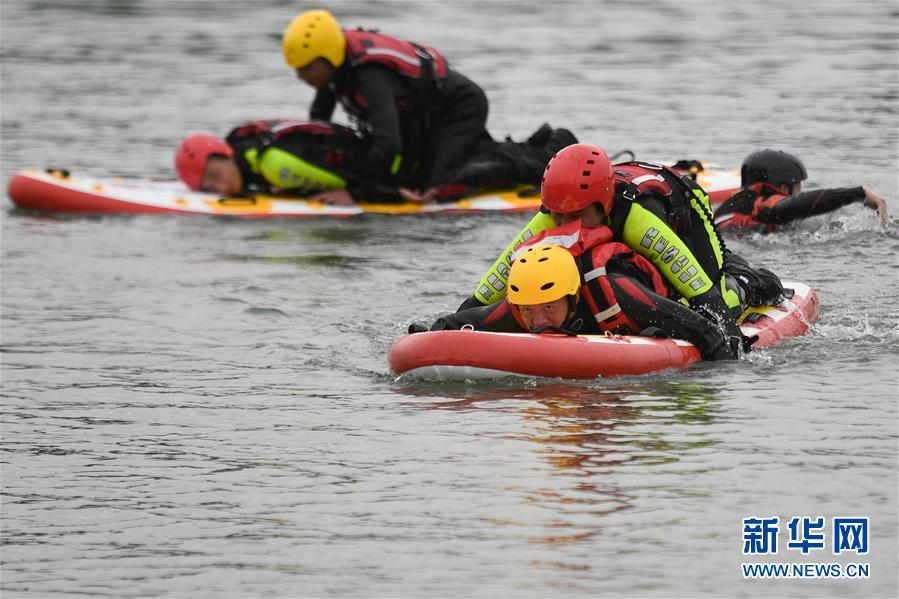 7月7日,吳興區(qū)消防救援大隊(duì)隊(duì)員在演練水上救援,以備搶險(xiǎn)。近日,位于浙江北部的湖州市遭遇多輪降雨,東部平原河網(wǎng)普遍超警戒水位,水庫山塘高位運(yùn)行。7月5日12時(shí)30分,湖州市人民政府防汛防旱指揮部將防汛應(yīng)急響應(yīng)提升至Ⅲ級(jí),要求各地密切監(jiān)測(cè)汛情,切實(shí)做好各項(xiàng)防范工作,確保安全度汛。新華社記者黃宗治攝